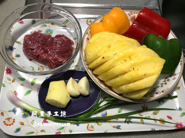 今天阿里就來做一個酸甜開胃口味的菜,菠蘿(鳳梨)炒牛肉。 菠蘿(鳳梨)可清熱解暑、生津止渴,可治療消化不良、頭昏眼花等症。菠蘿的香味是來自其成份中的酸丁酯,具有刺激唾液分泌和增加食慾的功效。 牛肉是營養價值很高的食物,它的營養價值要比豬肉要好,有多種人體所需的氨基酸,可以提高人的免疫力,牛肉不僅富含能促進肌肉增長的蛋白質,還有很多的鐵和鋅,可以促進循環系統健康。牛肉能補脾胃、益氣血、強筋骨,中氣不足、氣血兩虧、體虛久病、顏面蒼白的人,尤其適合多吃牛肉。 所以菠蘿(鳳梨)炒牛肉是絕配,重點是:類似這樣的食譜尤其深受上班一族OL熱烈的歡迎,30分鐘上菜好(依時)easy,需要健康的妳我他,這個色彩斑斕迷人,清新宜人,也能帶給味蕾暢快的感覺的盛夏開胃家常菜,喜歡微辣的子薑菠蘿(鳳梨)炒牛肉,或者對吃子薑的朋友最佳的選擇。